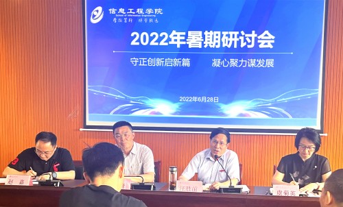 6月28日,信息工程学院以“守正创新启新篇 凝心聚力谋发展”为主题,在信工楼A208会议室召开了2022年暑期研讨会。校长汪胜前,副校长陆伟锋,校教育教学评估中心负责人,江西师范大学、南昌航空大学有关专家出席会议。信息工程学院党政领导班子成员、全体教职工参加会议。
