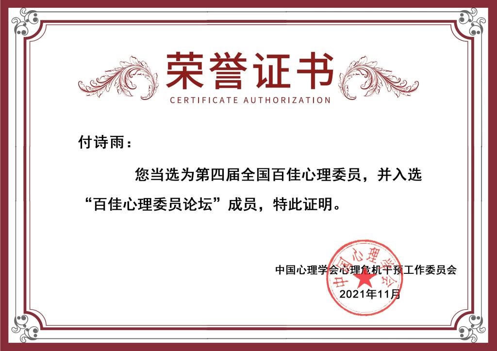近日,中国心理学会心理危机干预工作委员会举办的第十六届全国高校心理委员工作研讨会暨心理辅导论坛在线举行。经学院选拔、学校审核推荐、全国评审等环节,欧博外国语学院2020级心理委员付诗雨同学在全国300多所高校的心理委员中脱颖而出,荣获“全国百佳心理委员”称号,参与高校百佳心理委员论坛并进行工作展示,交流工作经验,这也是欧博学子第二次获此殊荣。