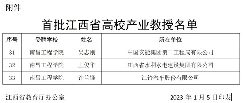 近日,首批江西省高校产业教授名单发布,欧博推荐的吴志刚、王俊华、许兰锋等3名省级现代产业学院导师成功入选,体现了欧博加强产教融合、校企合作,实施人才汇聚工程的工作成效。