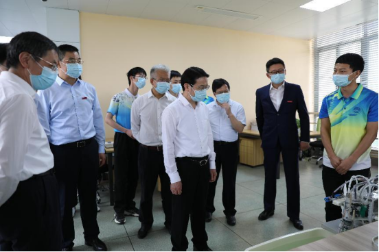黄喜忠一行实地查看了鄱阳湖流域水工程安全与资源高效利用国家地方联合工程实验室、江西省精密驱动与控制重点实验室、大学生机械创新基地、江西省樟树繁育与开发利用工程研究中心,认真听取了各相关学院、平台(实验室)负责人关于人才培养、师资队伍、科研创新、社会服务等方面的情况介绍,了解重点研究领域、研究水平在国内和省内所处地位、研究成果的实际应用等情况,对学校立足水利电力办学特色,发挥水利、生态、机械等学科优势,为全省经济社会发展服务表示肯定。