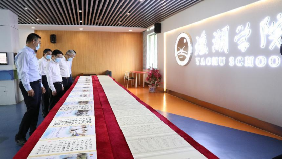 黄喜忠一行调研考察了瑶湖学院,认真听取瑶湖学院教育教学改革情况汇报,对学院打造国内先进、省内一流的教学环境,自主学习、自主管理、自主创新的育人理念和现代开放的浓郁氛围表示赞赏。