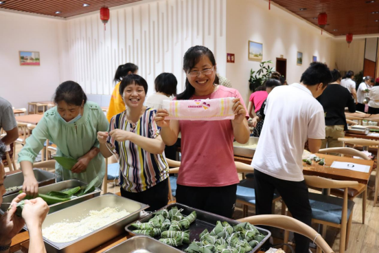 6月10日下午,由校工会主办,后勤保障处承办的“爱心暖端午,粽香感党恩”教职工包粽子比赛在润园教职工餐厅举办,来自各分会的近百名教职工参与活动,校党委副书记吴泽俊和教职工们一起包粽子,面对面交流谈心。