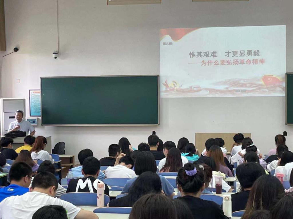 纪委书记殷安全以“惟其艰难 才更显勇毅——为什么要弘扬革命精神”为题,从马克思主义经典作家论革命精神、中国共产党革命精神的历史坐标、以及弘扬革命精神,做好新时代答卷人等层面,向学生讲述了在中国特色社会主义新时代为什么要弘扬革命精神,以及如何传承好、弘扬好革命精神。