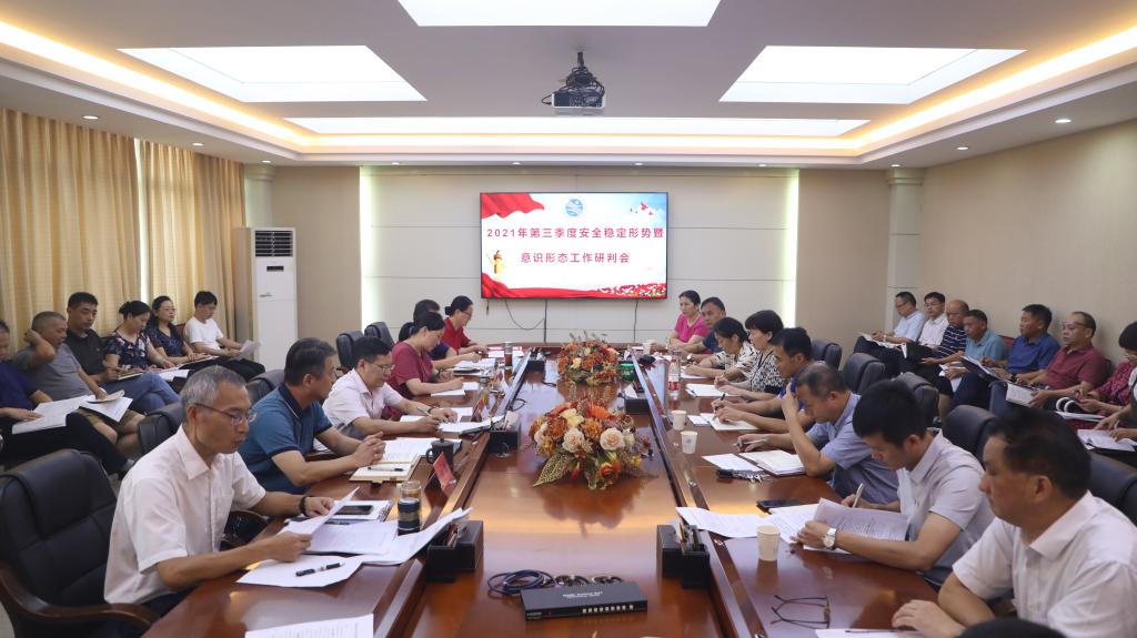 9月27日,欧博在行政楼300会议室召开2021年第三季度安全稳定形势暨意识形态工作研判会。校长汪胜前、副校长李明出席会议并讲话,副校长周敏丹主持会议,各单位主要负责人参加会议。