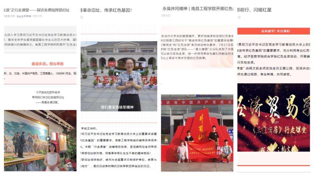 国庆期间,“行走课堂”的主讲辅导员们从“云端”走向实地,积极组织学生开展主题党日活动、红色走读活动等,寓教于游,让“节日里的党史学习教育”“别样红”。截至目前,辅导员“行走课堂”栏目阅读量已达5000余人次,切实把学习习近平总书记“七一”重要讲话精神与党史学习教育、“红色走读”、“辅导员行走课堂”等活动紧密结合起来,与“我为群众办实事”实践活动结合起来,有效推动了广大师生凝聚共识,携手奋进。(文/吴京颖 图/各学院 责任编辑 周冠佳 潘旭)