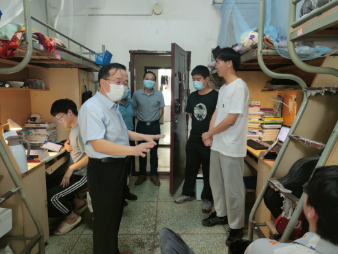 樊后保仔细查阅了学生体温检测等工作台账,了解学生宿舍疫情防控情况,要求学院和学生公寓按要求做好疫情防控工作,提醒同学们认真学习,加强锻炼,严格遵守学校疫情防控管理规定,共同守护校园安全。