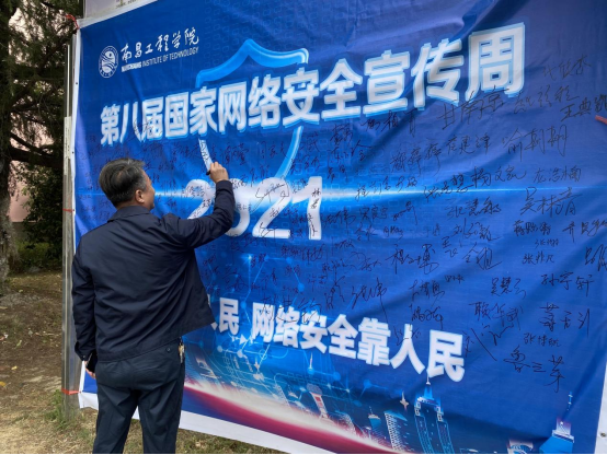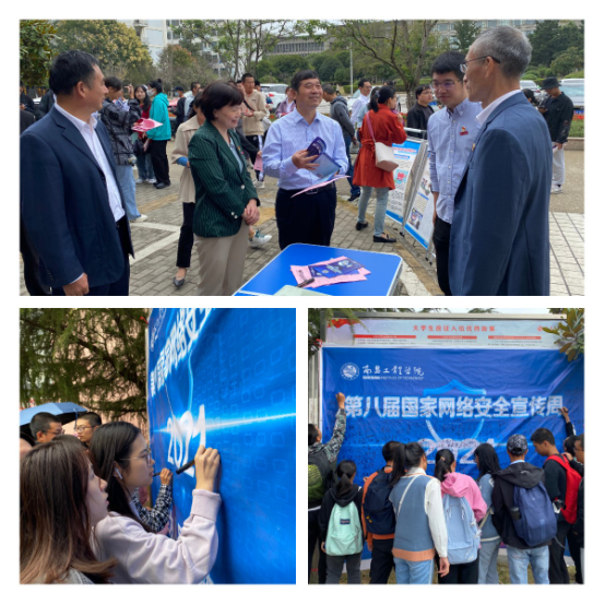10月13日中午,网络安全宣传周启动仪式暨网络安全主题展在润园门口广场举行,校园网络安全倡议签名、现场派发安全教育手册和传单、网络安全知识交流问答等活动有序开展,校党委副书记吴泽俊、副校长李明等校领导参加活动并指导工作。
