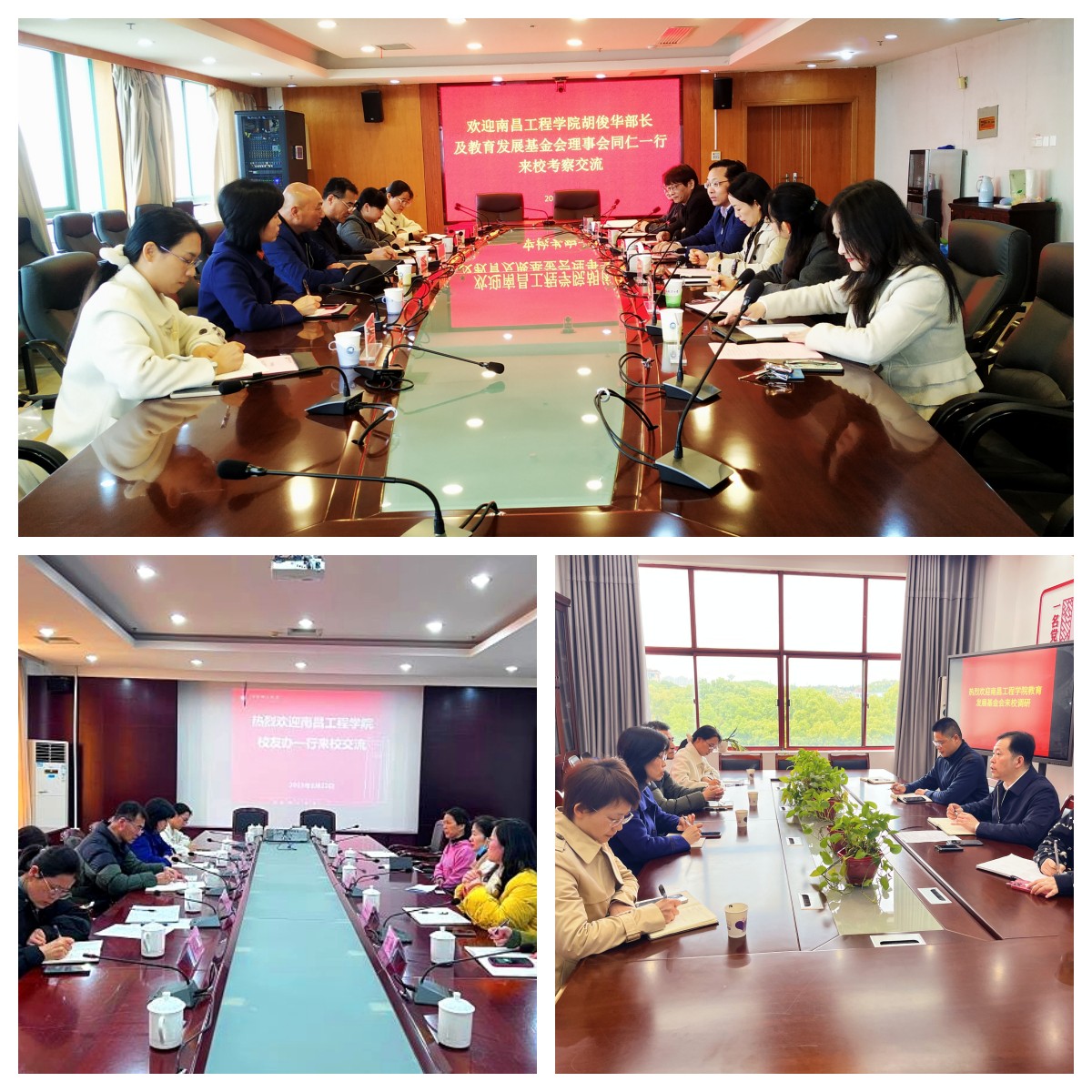 在江西师范大学、华东交通大学调研期间,双方就基金会的组织建设、社会资源拓展、细化校友服务、加强基金会和校友工作信息化建设等进行了充分交流。