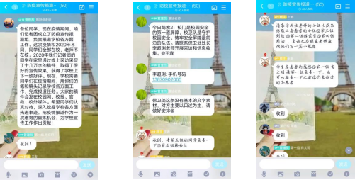 随着第一轮核酸检测开展,欧博防疫大战正式打响,党委宣传部(新闻中心)负责指导的大学生记者团也闻令而动。3月23日,王春接到“众志成城,抗击疫情”主题征稿启事的通知——全团要深入挖掘和大力宣传疫情防控期间典型人物的先进事迹。与指导老师周冠佳和潘旭交流后,王春迅速组建小群,将参与写稿和拍摄的同学拉进群——“防疫宣传报道小组”QQ群。一段时间以来,它成为了记者团工作的主要阵地——“叮咚叮咚”,提示音不断响起,手机屏幕不停闪烁,新闻线索层出不穷。