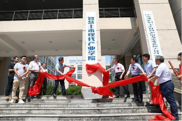 6月26日上午,智慧土木现代产业学院揭牌仪式暨智慧土木现代产业学院论坛在土木与建筑工程学院举行。校党委书记金志农出席仪式并与共建单位代表亲切交流,校长汪胜前在仪式上致辞,副校长陆伟锋主持仪式。江西建工第二建筑有限责任公司、江西省建筑设计研究总院、中清大装配式建筑有限公司、江西绿标建筑咨询有限公司、广联达科技股份有限公司、深圳市斯维尔科技股份有限公司等共建单位领导和嘉宾,学校相关职能部门负责人及土木与建筑工程学院全体教师和学生代表参加活动。