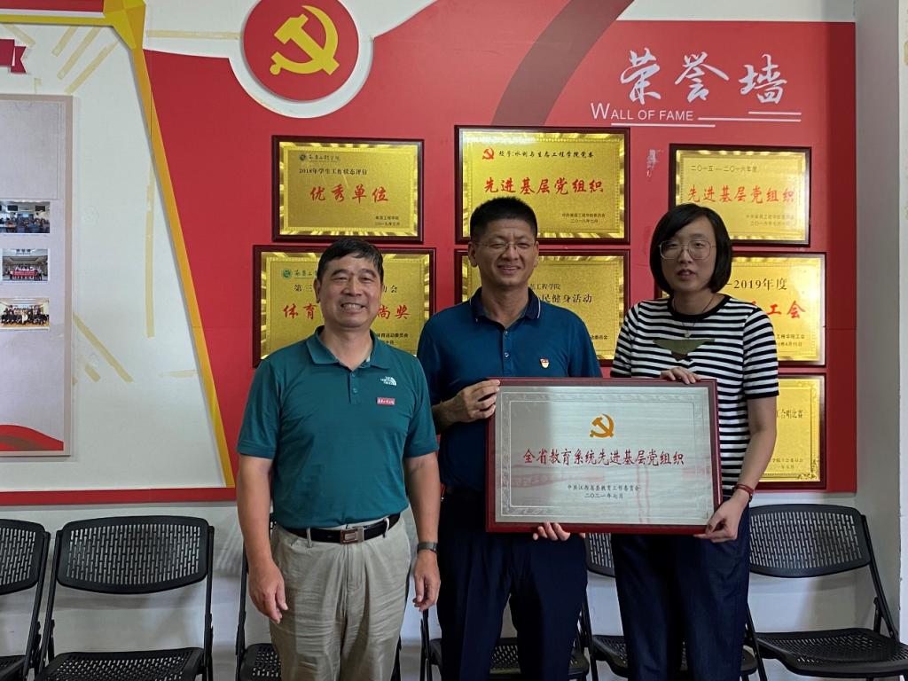 吴泽俊为获得全省优秀共产党员的水利与生态工程学院副院长牛景太和获得全省教育系统先进基层党组织的水利与生态工程学院水利水电工程教研室党支部颁发了证书。(文/刘丽平 图/郑可萱 责任编辑 周冠佳 潘旭)