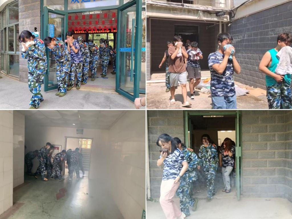 演练前,各学生公寓管理员对疏散逃生、消防灭火器操作等知识进行了详细讲解。随后,各学生公寓楼道间黄色烟雾蔓延,进入模拟火灾情境。警报声拉响后,同学们在老师的组织下迅速撤离,拿起湿毛巾捂住口鼻,低下身子,沿着指定的逃生路线,快速、安全、有序地从各宿舍楼层疏散到安全区域。