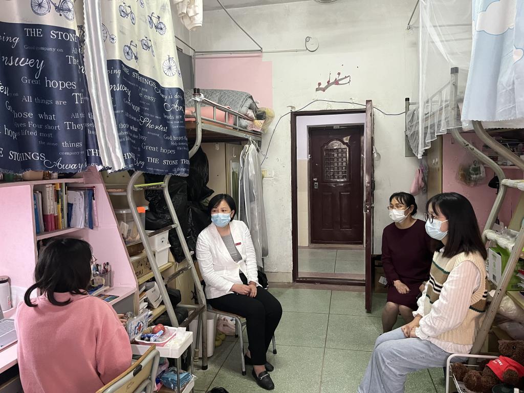 4月13日下午,副校长周敏丹先后来到学生社区2栋和外国语学院执勤点走访看望,与学生亲切交谈,详细了解同学们的学习、生活和心理状况。