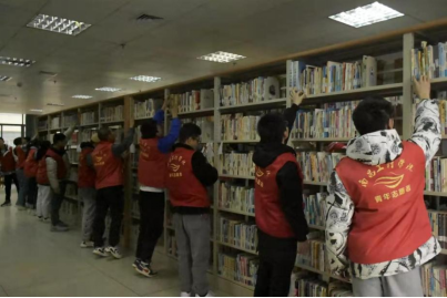 在“青春书香行”活动中,3月1日,瑶湖学院青年志愿者协会在校图书馆开展书籍修补及整理活动。