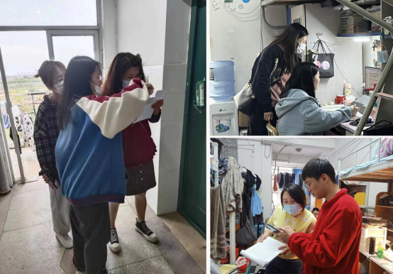 黄丹、万旎、万珊、邓婕、郭佾等老师在做好学生日常管理工作的同时,还尽力去帮助他们解决实际困难,为他们取快递、买学生急需的书籍和生活用品。为了摸清学生底数和思想状况,他们经常带领学生志愿者深入学生宿舍,宣讲疫情防控政策,提醒同学们做好个人防护。