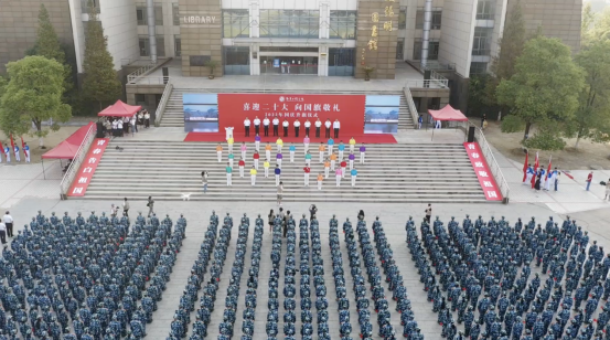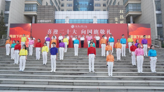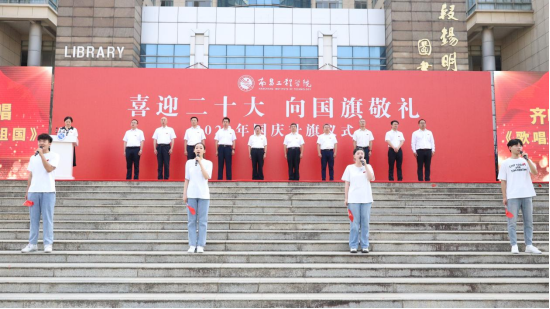团学干部学习习近平新时代中国特色社会主义思想宣讲团作题为《胸怀报国志 逐梦新征程》国旗下的演讲,以青春的名义致敬祖国。活动在全体师生高唱《歌唱祖国》的歌声中落下帷幕。