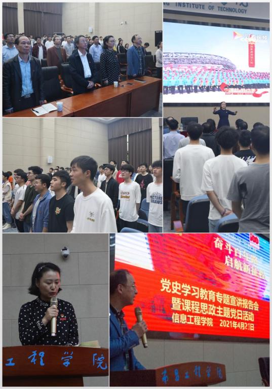 信息工程学院党委要求,各党支部、全体党员和师生要以党史学习教育为契机,深入学习贯彻本次专题宣讲报告会精神,将党史学习教育成果转化为工作实效,奋勇争先、努力钻研、科技报国,让南工的明天充满希望、让水利的未来更加辉煌,以优异的成绩向党的百年华诞献礼。活动在合唱《歌唱祖国》中圆满结束。(文/阮晶晶 图/学生记者 许龙强 潘旭 陈龙 曾任贤)