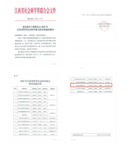 10月26日,江西省社会科学界联合会印发了《省社联关于批准设立2022年江西省哲学社会科学重点研究基地的通知》,欧博经济贸易学院联合工商管理学院、马克思主义学院申报的“水经济与管理研究中心”获批立项,这是欧博首个省社联基地。(文/图 崔建锋 姚小莉 责任编辑 潘旭 陈巧雄)