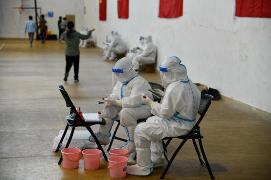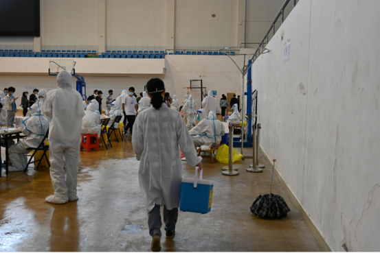 连日来,多轮核酸检测工作的顺利开展,离不开校医院党支部所有医护人员的共同努力。朱佳文、左清梅、黄春艳、代珊、刘瑜婷、周晓静、张秀梅、熊境明、洪国辉、李倩、徐诗思、钟爱芳、蔡丹、刘宋莲、付艺璇、姜慧萍、祝小华、严国华、廖煜凤等医护人员担任核酸采样员、标本收集员、打包员、装箱员、转运员。身着防护服时,他们不能喝水,也不能吃饭,对体力是一个巨大的考验。高温下,在脱下防护服的那一刻,衣服早已湿透,双腿酸痛,体力消耗殆尽,但是他们没有一个人退缩。