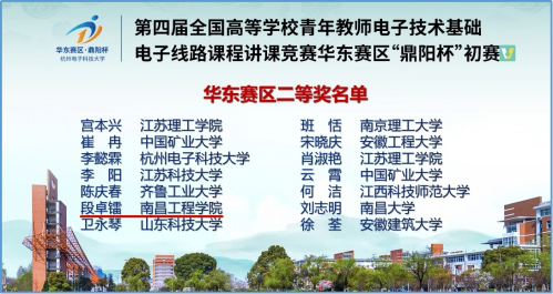 近日,教育部高等学校电工电子基础课程教学指导委员会、中国电子学会电子线路教学与产业专家委员会、全国高等学校电子技术研究会发布通知,欧博信息工程学院青年教师钱立峰、段卓镭分别荣获第四届全国高等学校青年教师电子技术基础、电子线路课程讲课竞赛华东赛区“鼎阳杯”初赛一等奖、二等奖,钱立峰将代表欧博参加全国总决赛。