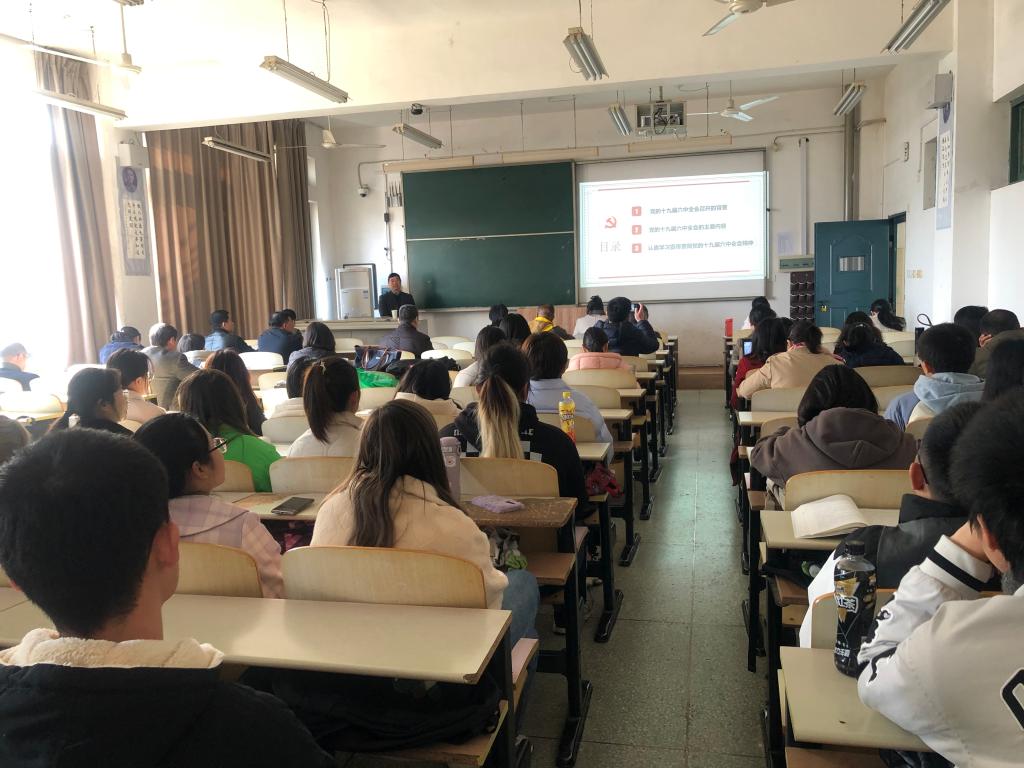 12月21日下午,校党委副书记吴泽俊在经济贸易学院宣讲党的十九届六中全会精神以及江西省第十五次党代会精神,经济贸易学院全体教职工及2021级审计专业学生代表聆听了宣讲。