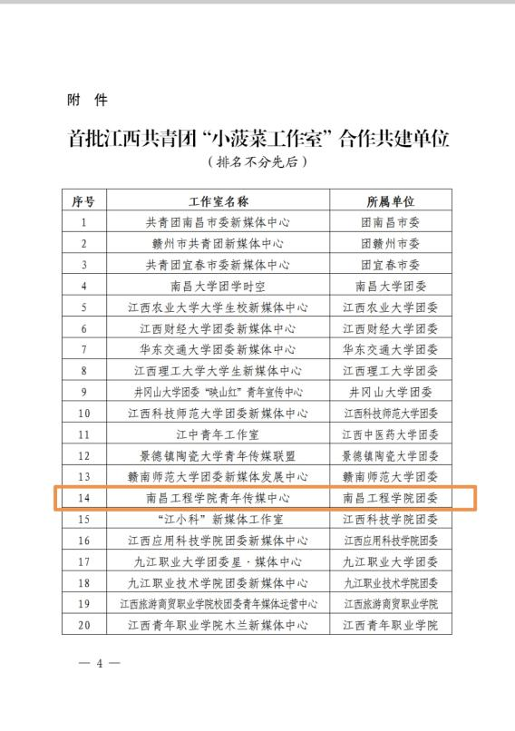 近日,共青团江西省委发布《关于建立江西共青团“小菠菜工作室”合作共建机制的通知》,欧博青年传媒中心入选首批合作共建单位之一。
