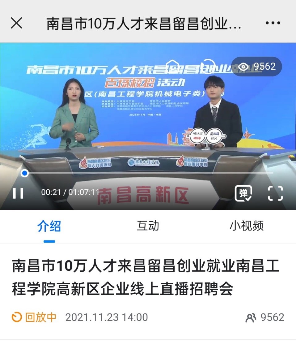 11月23日下午,南昌市10万人才来昌留昌创业就业百场校招活动高新区(南昌工程学院机械电子类)专场“直播带岗”招聘会顺利举办。