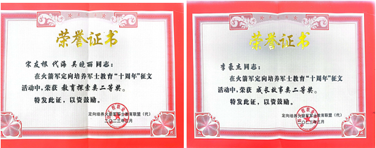 近日,庆祝定向培养火箭军军士教育10周年“奋进十年路 启航新征程”主题征文评选结果揭晓,欧博军士学院宋友根、代海、吴晓丽三名老师撰写的《“一核二能三维”火箭军军士生人才培养模式构建与实践》获教育探索类二等奖,2020级电气自动化技术(火箭军)李豪杰同学撰写的《勤学苦练求真知,征程新起再出发》获成长故事类二等奖。