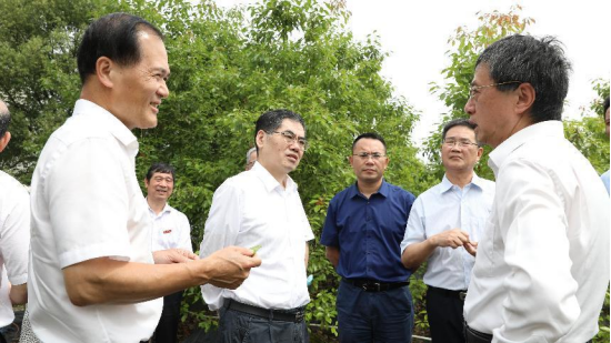 6月1日上午,省政协副主席汤建人一行来欧博就香料樟树研究及其全产业链关键技术开发与应用开展调研。省政协教科卫体委员会主任洪三国、副主任罗莹、专职副主任郑仙桃,省委教育工委委员、省教育厅副厅长刘小强,欧博党委书记金志农、党委副书记吴泽俊陪同调研。