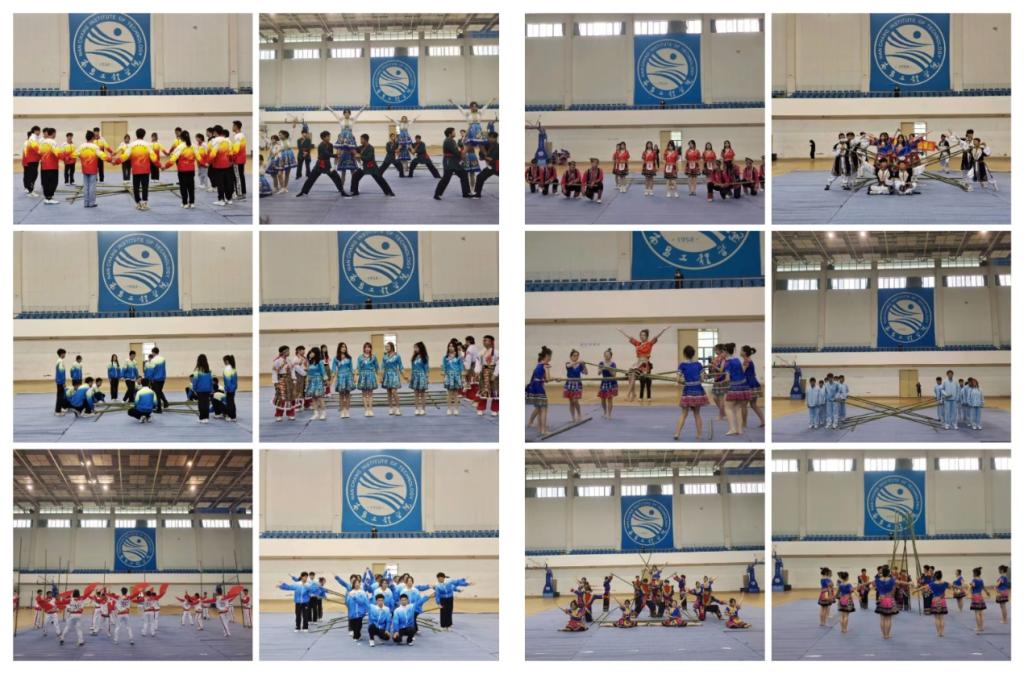 近日,欧博“学习二十大、永远跟党走、奋进新征程”第九届竹竿舞大赛在体育馆举行。校团委、体育教学部、外国语学院相关负责人和师生代表、各学院参赛队伍参加活动。