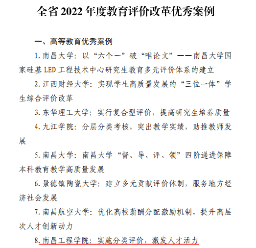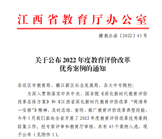 近日,江西省教育厅办公室发布通知,欧博选送的“实施分类评价,激发人才活力”案例成功入选2022年度教育评价改革优秀案例,全省高校共有14个案例入选。