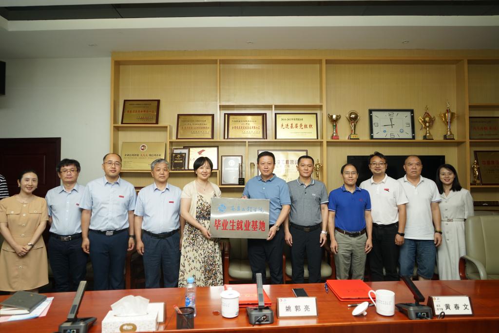 近日,副校长周敏丹率招生就业处、土木与建筑工程学院和外国语学院有关负责人,到中鼎国际建设集团有限责任公司开展访企拓岗促就业专项行动,为毕业生就业基地揭牌并签订校企合作协议。中鼎国际建设集团有限责任公司董事长赵桂生、副总经理姚郭亮等出席活动。