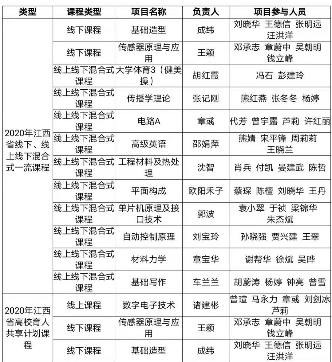 近日,江西省教育厅公布了2020年江西省线下、线上线下混合式、社会实践一流本科课程认定暨课程育人共享计划立项结果,欧博12门课程获批立项为省级一流课程。其中线下一流课程2门,线上线下混合式一流课程10门。3门课程获批为江西省高校育人共享计划课程,其中,线下课程2门,线上课程1门。(文图/卢成林 责任编辑 潘旭)
