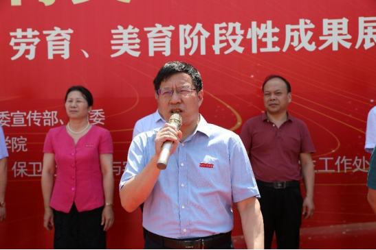 陆伟锋在致辞时表示,学校深入贯彻落实习近平总书记关于劳动和美育的重要指示精神,提倡以美育人、以文化人,近年来先后出台《南昌工程学院劳动教育实施方案》《南昌工程学院美育教育实施方案》,全力构建“五育并举”教育体系,全面提高学生审美和人文素养,塑造学子尊重劳动、热爱劳动、崇尚劳动的品质,做到以劳育美、以艺铸德。广大青年学子决不能局限于专业知识和技能,要培育高远的精神追求,高尚的人格修养,广阔的胸襟,丰富的文学、艺术、哲学、历史的学养。希望广大教师和学生进一步推进劳动教育、美育教育与人才培养有机结合,用脚步丈量祖国大地,发现中国精神,倾听人民呼声,感应时代脉搏,把对党和国家血浓于水、与人民同呼吸共命运的情感贯穿学业全过程、融汇在事业追求中,全面落实学校第三次党代会提出的目标任务,以优异成绩迎接党的二十大胜利召开。