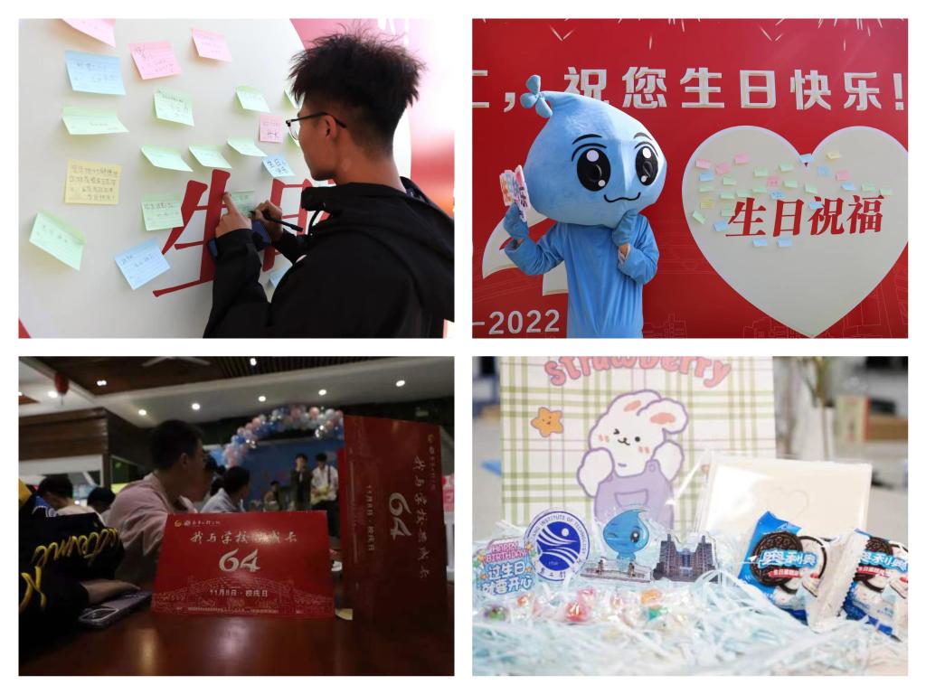 本次活动还为当天生日的同学们制作了定制版生日贺卡和限量版水宝宝文创产品,后勤保障处提供了生日餐券。同学们纷纷在生日祝福的背景墙上留下自己的心愿和对学校的美好祝福。大家表示,十分荣幸能与南工一同庆生,此次活动让大家感受到了学校对学子的温暖关爱,留下终生难忘的生日记忆,将不辜负学校期望,努力学习、踔厉奋发,将“小我”的成长融入南工大发展,勇担时代重任,为学校事业高质量发展贡献青春力量。(文/胡洁 钟雪汝 图/姜鑫萌 樊荣瑞 张敬川 责任编辑 潘旭 徐金兰)