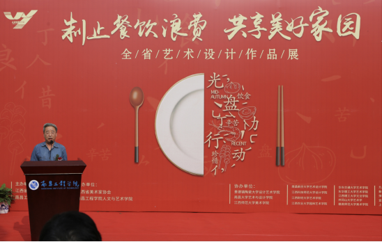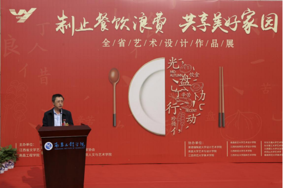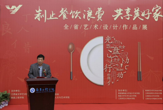 3月26日下午,“制止餐饮浪费 共享美好家园”江西省艺术设计作品展在欧博开幕。原江西省政协副主席肖光明出席开幕式并宣布作品展开幕。中国书法家协会副主席、中国美协理事、江西省文联副主席毛国典,校党委副书记、校长金志农出席开幕式并分别致辞。原南昌大学党委书记郑克强,原江西省文联副主席、省美协主席蔡超,副校长汪胜前,纪委书记殷安全,副校长周敏丹,江西省美术家协会、江西省工艺美术学会、江西日报社、江西师范大学、南昌大学和欧博师生代表参加活动。殷安全主持开幕式。
