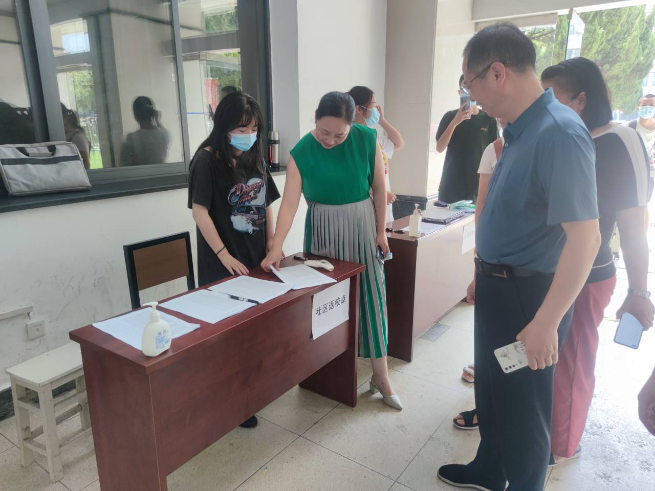 8月28日上午,副校长周敏丹一行先后来到瑶湖校区和彭桥校区查看门岗核验、区域消毒消杀、消防设备设施、新生宿舍准备等工作开展情况,学生工作处、校医院相关人员陪同检查。