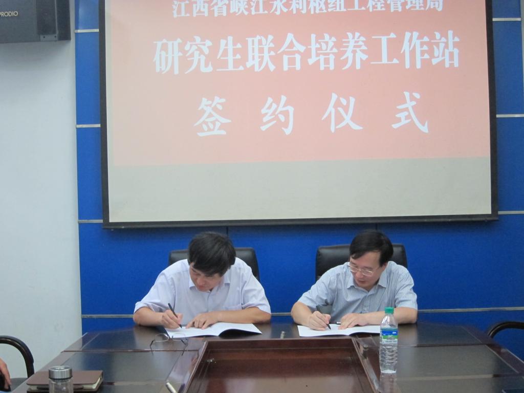 金志农与杨丕龙共同为江西省峡江水利枢纽工程管理局联合培养工作站揭牌、与刘凤生共同为国家电投江西峡江发电有限公司联合培养工作站揭牌。金志农还向发电公司刘凤生等三位校外硕士生导师颁发了聘书,并与导师们进行了交流。