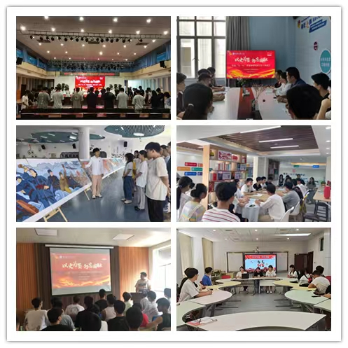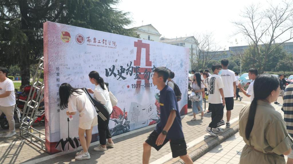 活动前夕,学校面向师生发出《以史为鉴,砥砺前行——纪念“九·一八”事变90周年倡议书》,倡议广大师生铭记历史、缅怀先烈,弘扬伟大建党精神。活动期间,全校师生重温历史时刻,激发奋进力量。9月18日,在教学楼设置了“九·一八”事变背景墙和宣传标语,上午10:00-10:03,全校授课教师组织学生集体默哀三分钟。思政课教师将“九·一八”事变融入思政课程教学内容,在重温历史、思考历史、感悟历史中,引导学生培养爱国之情、砥砺强国之志、实践报国之行。其他课程教师将“九·一八”事变融入课程思政教学内容,激发学生爱国情感,培养坚韧不拔的奋斗精神和家国情怀。各单位充分用好用活阵地,利用江西爱国主义基地、学生公寓新时代文明实践中心、党员活动室等开展了系列纪念活动。校团委依托百米百年党史画卷展板,用革命先烈鲜活的事例教育引导广大团员青年牢记历史、勇于创新、积极实践,践行“请党放心,强国有我”的青春誓言;研究生院、信息工程学院、士官学院通过组织学生开展红色故事宣讲活动,观看《“九·一八”真相》红色影片等,切实弘扬“勿忘国耻,强国有我”的爱国情怀和民族精神;机械工程学院、工商管理学院、经济贸易学院、理学院、外国语学院和瑶湖学院通过开展主题党(团)日活动,鼓励当代大学生要将浓浓的爱国热情融入到努力学习、建设国家、发展经济、强盛民族的实际行动中;电气工程学院、人文与艺术学院通过党员座谈分享会,阐述了当代大学生要坚定理想信念,展现应有的责任与担当,把爱国热情转化为助力中华民族伟大复兴的强大动力,居安思危、奋发图强。