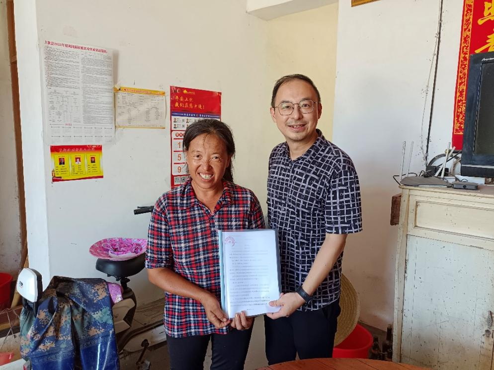 驻村第一书记章蔚中与脱贫户蓝小红正式签订农产品定点采购协议
