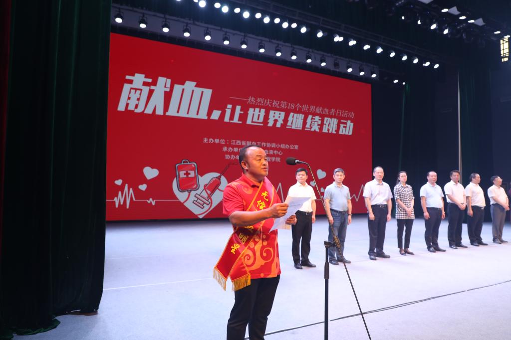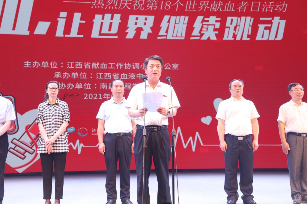 今年的6月14日是第18个世界献血者日,活动的主题是“献血,让世界继续跳动”。6月10日,由江西省献血办主办、江西省血液中心承办、欧博协办的江西省庆祝第18个世界献血者日活动在欧博举行,来自省献血工作协调小组成员单位干部队伍,省直医疗单位领导及专家义诊队伍,高校大学生队伍,支持献血公益事业的部分公司企业,以及固定献血者、志愿者代表、新闻媒体共计600余人参加活动。副校长李明出席活动并致辞。