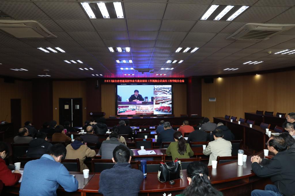 12月10日上午,省教育厅、省人社厅联合召开2022届全省普通高校毕业生就业创业工作视频会议。省委教育工委副书记、省教育厅厅长郭杰忠,省人社厅副厅长王成兵出席会议并讲话。欧博在大学生活动中心B100会议室设置分会场,校党委书记金志农,副校长周敏丹,相关职能部门负责人,各学院党委书记、院长、党委副书记和毕业班班主任近80人参加会议。