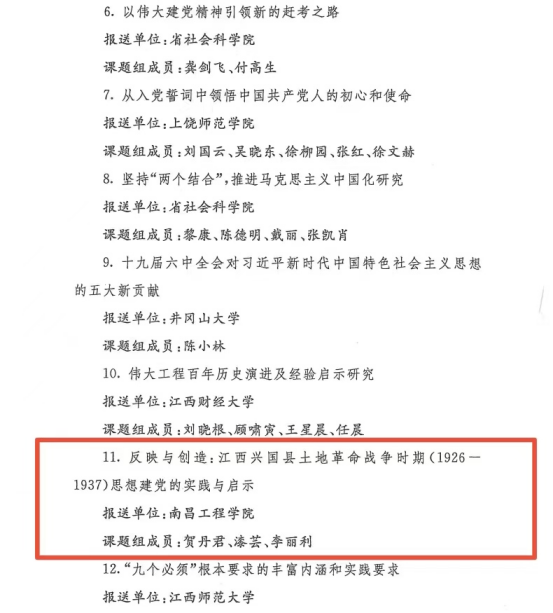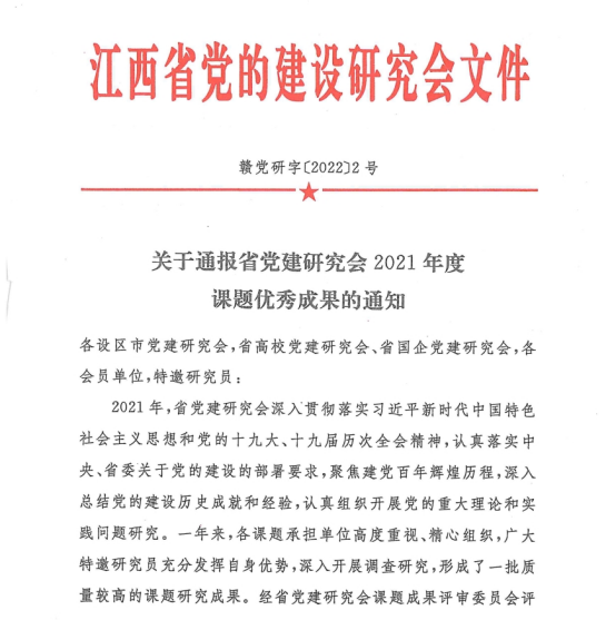 据悉,2021年,江西省党建研究会按照中央、省委关于党的建设部署要求,组织开展党的重大理论和实践问题研究。各课题承担单位高度重视,周密组织,深入调研,共报送课题成果600余篇。经省党建研究会课题成果评审委员会评审,评审出省社科研究规划一般项目委托课题15篇、省高校党建研究项目委托课题40篇。(文/图 王平 漆芸 责任编辑 周冠佳 潘旭)