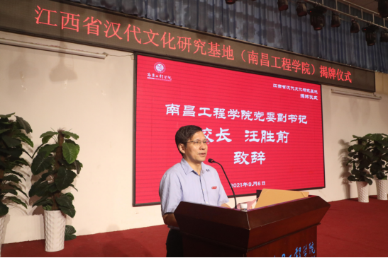 汪胜前对丁新权一行表示欢迎。他表示,江西历史悠久,有丰厚的文化底蕴,值得我们深入挖掘、全面研究、保护好、传承好并创造性利用好。“江西省汉代文化研究基地”揭牌仪式在南昌工程学院举行,是推进江西汉代文化研究的重大举措,也是推进江西汉代文化弘扬发展的一件大喜事。他要求,基地要按照省文化和旅游厅的相关要求做好基地的建设和管理工作,进一步凝练研究方向,充分发挥欧博水利学科特色优势,将水文化、水利史、水利科技史、工程技术史、建筑材料、艺术设计、文创产品与汉代文化研究相结合,潜心研究,不断推出汉代文化研究的精品成果。