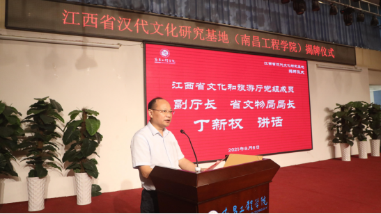 丁新权指出,我省设立江西省汉代文化研究“一中心、五基地”,选取了南昌工程学院等五家单位作为汉代文化研究基地,协同开展汉代文化研究工作,既是贯彻落实习近平总书记关于文化文物工作重要指示精神的重要举措,也是增强江西文化自信的现实需要,必将有力提升江西文化软实力和竞争力。他表示,“江西省汉代文化研究基地”要协同开展研究工作,打造开放学术平台,勇挑重担,推出重要研究成果。
