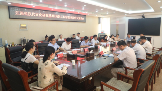 9月6日上午,“江西省汉代文化研究基地(南昌工程学院)”揭牌仪式及座谈会在欧博举行。校长汪胜前,江西省文化和旅游厅副厅长、省文物局局长丁新权出席仪式并讲话,副校长贺丹君、江西省文化和旅游厅博物馆处处长刘昌兵出席仪式并分别主持相关活动,党委宣传部、科研处、人文与艺术学院、马克思主义学院、江西省水文化研究中心负责人,以及基地教师代表和学生代表参加活动。