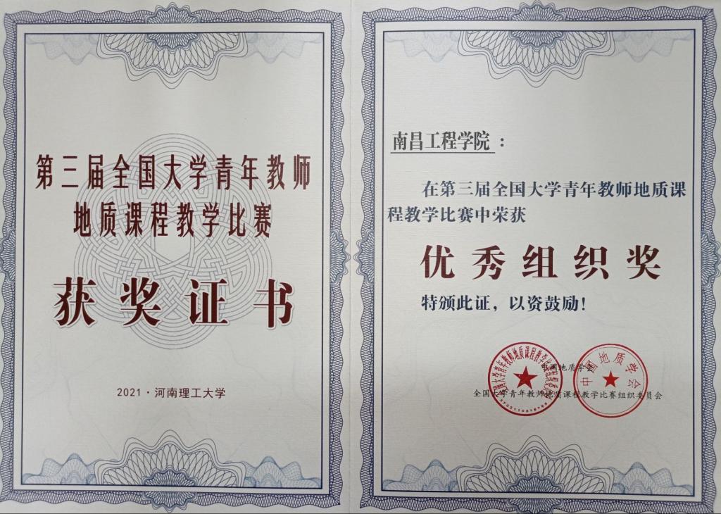 5月15日至16日,由中国地质学会主办,河南理工大学承办的第三届全国大学青年教师地质课程教学比赛在河南焦作举行。欧博水利与生态工程学院教师刘晓荣获二等奖,欧博获优秀组织奖。