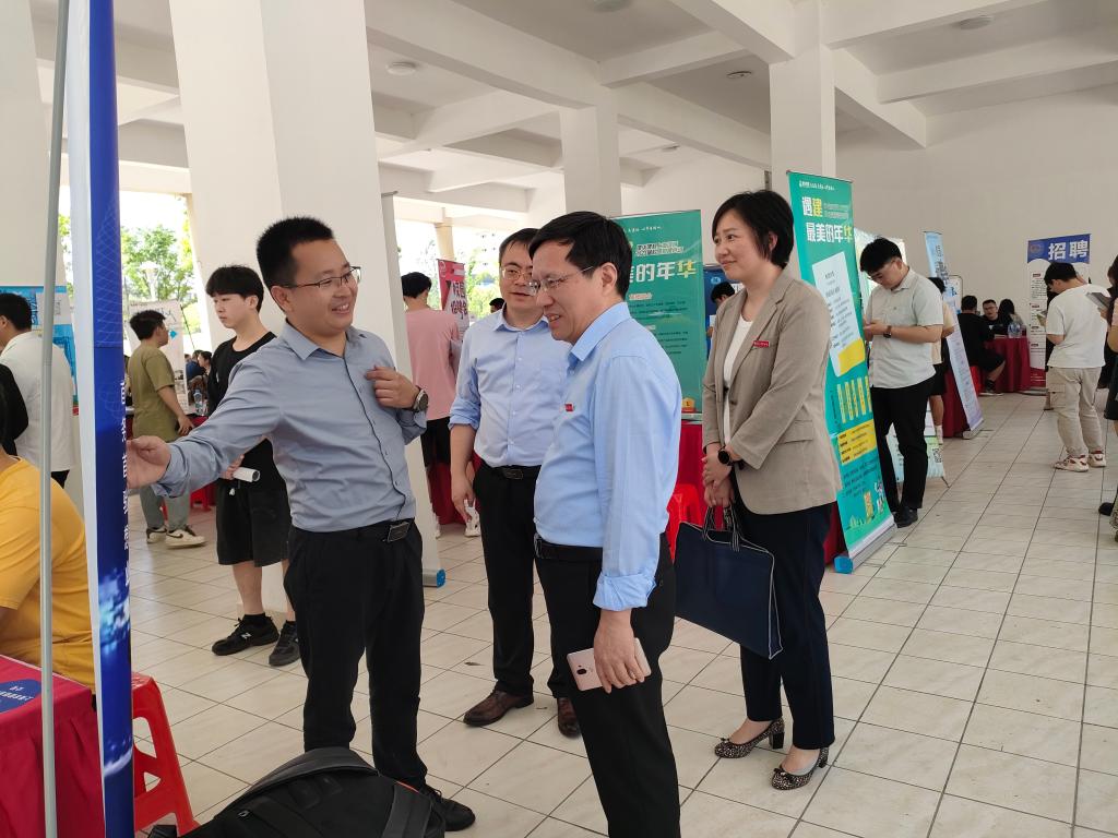 4月21日,欧博2023年校友企业专场及大学科技园园区企业专场招聘会在大学生活动中心广场顺利举办。校党委书记、校长汪胜前,副校长周敏丹,校党委委员、党委组织部部长胡俊华到现场指导,招生就业处、校友办负责人和各学院负责人参加相关活动。