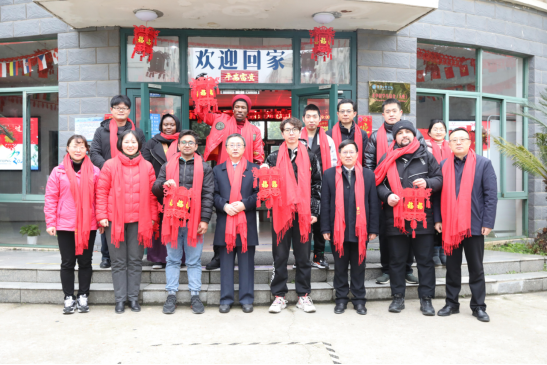 瑞牛舞动丰收岁,金虎喜吟锦绣春。1月31日农历除夕,校党委书记金志农、校长汪胜前、副校长周敏丹一行来到学生公寓11栋、润园食堂,看望寒假留校学生,给同学们送上精美围巾、春节红包和慰问品,与坚守岗位一线的教职工们欢聚一堂、共进年夜饭并送上良好的新春祝愿。