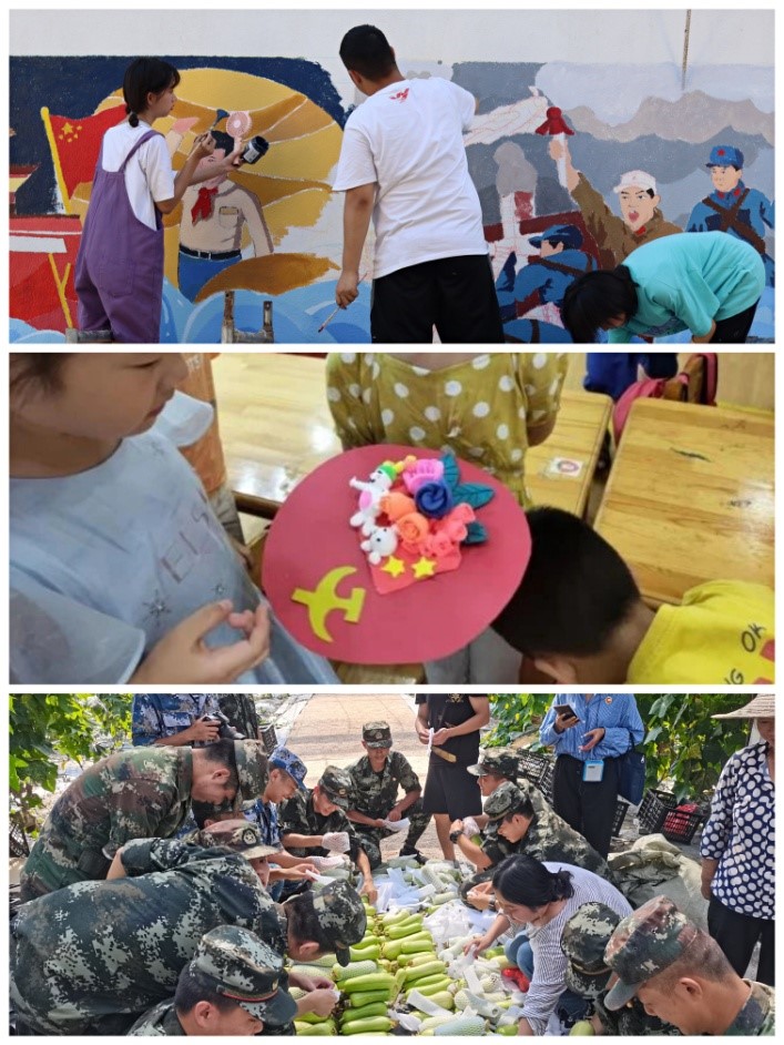 文化下乡,红色惠农。7月5日至16日,各实践团依托党史故事宣讲、红色歌曲学唱、百年党史画卷墙绘等形式,将红色文化飞入寻常百姓家,为新农村建设和乡村振兴添砖加瓦。人文与艺术学院“丹青画卷绘百年,奋楫扬帆谱新篇”社会实践团赴鹰潭市韬奋小镇,在当地墙面上绘就以建党百年历史为蓝本的百米百年党史画卷,将艺术设计融入乡村建设,为推动乡村振兴注入青春“动能”。国际教育学院赣梦支教队赴进贤县阳光城幼儿园开展“支教有梦,用爱护航”活动,对小朋友们进行用电安全和防溺水教育,学唱红色歌曲,并利用手工黏土制作党旗摆件,将红色文化根植于心。士官学院“追忆峥嵘岁月,立志从军报国”社会实践团前往习近平总书记考察过的330蔬菜大棚,帮助菜农套蔬菜售卖保护网袋,切实让农户得实惠。(文/朱彦奇 胡瑶 图/各实践团队 责任编辑 周冠佳 潘旭)